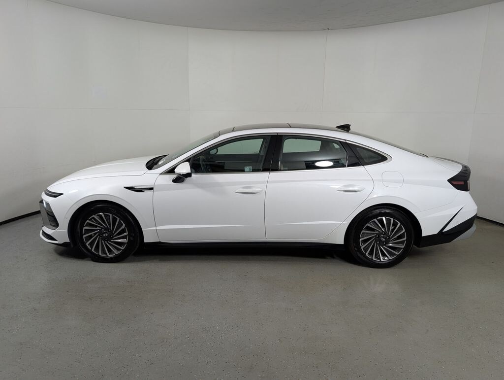 Features: Option Group 01, Sonata Hybrid Limited, 4D Sedan, I4, 6-Speed Automatic with Shiftronic, FWD, Serenity White, Dark Gray/Camel Leather, 12 Speakers, 17" x 7.0J Aluminum Alloy Wheels, 4-Wheel Disc Brakes, ABS brakes, Air Conditioning, Alloy wheels, AM/FM radio: SiriusXM, Apple CarPlay & Android Auto, Auto High-beam Headlights, Auto-dimming Rear-View mirror, Automatic temperature control, Brake assist, Bumpers: body-color, Cargo Net, Cargo Tray, Carpeted Floor Mats, Delay-off headlights, Driver door bin, Driver vanity mirror, Dual front impact airbags, Dual front side impact airbags, Electronic Stability Control, Emergency communication system: Bluelink+, First Aid Kit, Four wheel independent suspension, Front anti-roll bar, Front Bucket Seats, Front Center Armrest, Front dual zone A/C, Front reading lights, Fully automatic headlights, Heads-Up Display, Heated & Ventilated Front Bucket Seats, Heated door mirrors, Heated front seats, Heated steering wheel, Illuminated entry, Knee airbag, Lane Departure Warning System, Leather Seating Surfaces, Leather steering wheel, Low tire pressure warning, Memory seat, Navigation System, Occupant sensing airbag, Outside temperature display, Overhead airbag, Overhead console, Panic alarm, Passenger door bin, Passenger vanity mirror, Power door mirrors, Power driver seat, Power moonroof, Power passenger seat, Power steering, Power windows, Radio data system, Radio: AM/FM/HD/SiriusXM, Rain sensing wipers, Rear anti-roll bar, Rear Bumper Applique, Rear seat center armrest, Rear side impact airbag, Rear window defroster, Remote keyless entry, Security system, Speed control, Speed-sensing steering, Speed-Sensitive Wipers, Split folding rear seat, Spoiler, Steering wheel mounted audio controls, Tachometer, Telescoping steering wheel, Tilt steering wheel, Traction control, Trip computer, Variably intermittent wipers, Ventilated front seats, and Wheel Locks.