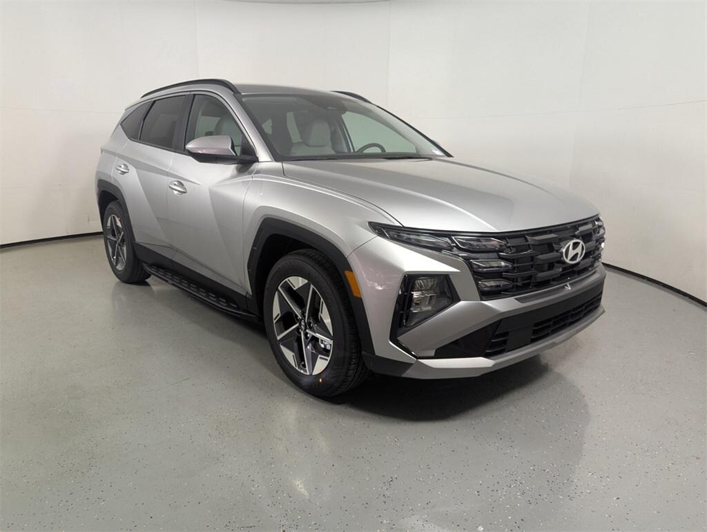 Features: Option Group 01, Tucson SEL, 4D Sport Utility, 2.5L I4 DGI DOHC 16V LEV3-SULEV30 187hp, 8-Speed Automatic with SHIFTRONIC, FWD, Shimmering Silver, Gray Artificial Leather, 18" x 7.5J Alloy Wheels, 4-Wheel Disc Brakes, 6 Speakers, ABS brakes, Air Conditioning, Alloy wheels, AM/FM radio: SiriusXM, Apple CarPlay & Android Auto, Auto High-beam Headlights, Automatic temperature control, Brake assist, Bumpers: body-color, Cargo Net, Carpeted Floor Mats, Delay-off headlights, Driver door bin, Driver vanity mirror, Dual front impact airbags, Dual front side impact airbags, Electronic Stability Control, Emergency communication system: Bluelink+, First Aid Kit, Four wheel independent suspension, Front anti-roll bar, Front Bucket Seats, Front Center Armrest, Front dual zone A/C, Front reading lights, Fully automatic headlights, H-Tex Leatherette Seat Trim, Heated door mirrors, Heated Front Bucket Seats, Heated front seats, Illuminated entry, Low tire pressure warning, Occupant sensing airbag, Outside temperature display, Overhead airbag, Overhead console, Panic alarm, Passenger door bin, Passenger vanity mirror, Power door mirrors, Power driver seat, Power Liftgate, Power steering, Power windows, Radio data system, Radio: AM/FM/HD Audio System, Rear anti-roll bar, Rear reading lights, Rear seat center armrest, Rear side impact airbag, Rear window defroster, Rear window wiper, Remote keyless entry, Security system, Severe Weather Kit, Side Steps, Speed control, Split folding rear seat, Spoiler, Steering wheel mounted audio controls, Tachometer, Telescoping steering wheel, Tilt steering wheel, Traction control, Trip computer, and Variably intermittent wipers.