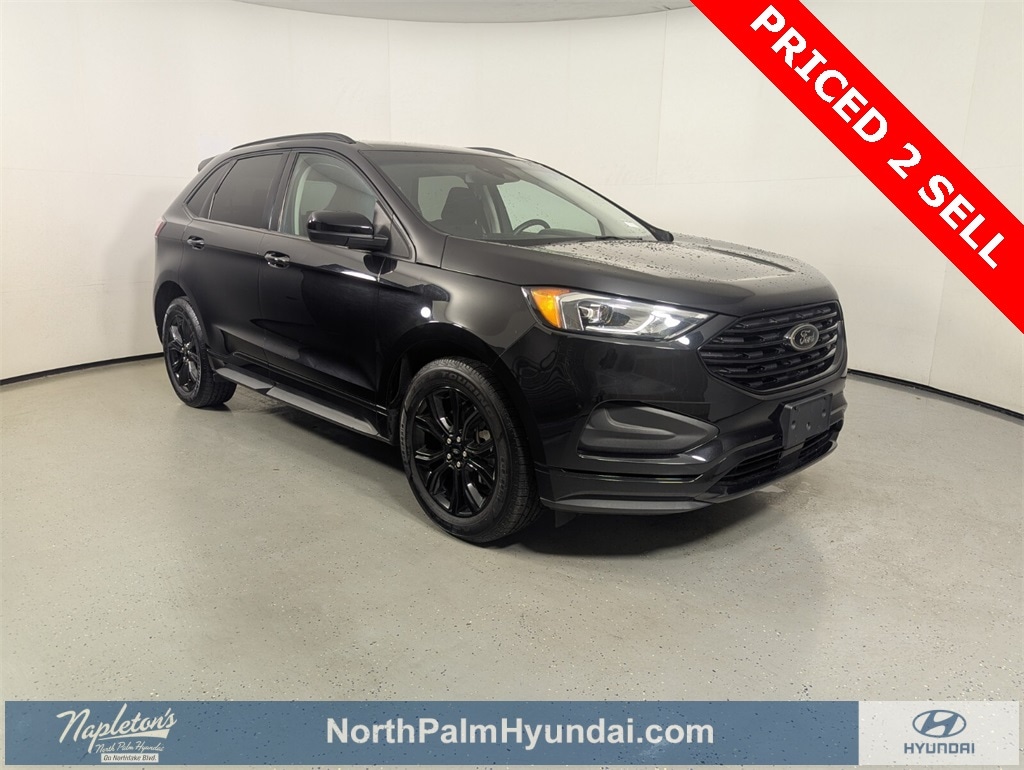 Features: Black Appearance Package (Black Badges, Black Grille & Surround, Black Mirror Caps, Black Painted Lower Bodyside Molding, Black Painted Skid Plate, Body-Color Front & Rear Bumpers, Rear Parking Sensors, and Wheels: 19" High-Gloss Black Painted Aluminum), Cargo Accessory Package (Cargo Mat, Rear Bumper Protector, and Retractable Cargo Area Cover), Equipment Group 100A, Edge SE, 4D Sport Utility, EcoBoost 2.0L I4 GTDi DOHC Turbocharged VCT, 8-Speed Automatic, AWD, Agate Black Metallic, Ebony w/Cloth Bucket Seats, 3.80 Axle Ratio, 4-Wheel Disc Brakes, 6 Speakers, ABS brakes, Air Conditioning, Alloy wheels, AM/FM radio: SiriusXM with 360L, Auto High-beam Headlights, Automatic temperature control, Black Roof-Rack Side Rails, Brake assist, Bumpers: body-color, Cloth Bucket Seats, Compass, Delay-off headlights, Driver door bin, Driver vanity mirror, Dual front impact airbags, Dual front side impact airbags, Electronic Stability Control, Emergency communication system: SYNC 4 911 Assist, FordPass Connect, Four wheel independent suspension, Front & Rear Floor Liners w/o Carpet Mats, Front anti-roll bar, Front Bucket Seats, Front Center Armrest w/Storage, Front dual zone A/C, Front reading lights, Fully automatic headlights, Illuminated entry, Knee airbag, Low tire pressure warning, Occupant sensing airbag, Outside temperature display, Overhead airbag, Overhead console, Panic alarm, Passenger door bin, Passenger vanity mirror, Power door mirrors, Power steering, Power windows, Radio: AM/FM Stereo/MP3 Capable, Rear anti-roll bar, Rear reading lights, Rear seat center armrest, Rear window defroster, Rear window wiper, Remote keyless entry, SiriusXM w/360L, Speed control, Speed-Sensitive Wipers, Split folding rear seat, Spoiler, Steering wheel mounted audio controls, SYNC 4A w/Enhanced Voice Recognition, Tachometer, Telescoping steering wheel, Tilt steering wheel, Traction control, Trip computer, Variably intermittent wipers, and Wheels: 18" Sparkle Silver-Painted Aluminum.