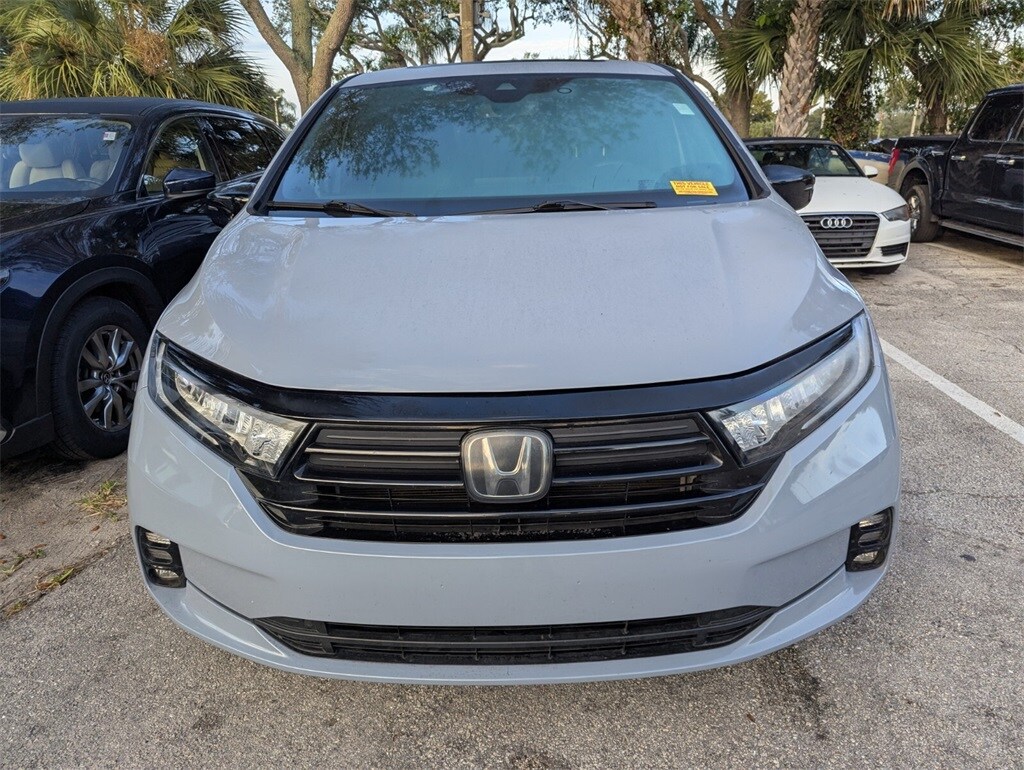 2023 Honda Odyssey Sport Beautifully finished in Lunar Silver Metallic with Black Leather interior. 3.5L V6 SOHC i-VTEC 24V 4D Passenger Van FWD 10-Speed Automatic **ONE OWNER**, **LOCAL TRADE**, **CLEAN CARFAX**, **MUST SEE TO APPRECIATE**, **EXTRA CLEAN**, 3.61 Axle Ratio, 3rd row seats: split-bench, 4-Wheel Disc Brakes, 7 Speakers, A/V remote: CabinControl, ABS brakes, Adaptive Cruise Control: Adaptive Cruise Control (ACC) with Low-Speed Follow, Air Conditioning, Alloy wheels, AM/FM radio: SiriusXM, Anti-whiplash front head restraints, Apple CarPlay/Android Auto, Auto High-beam Headlights, Auto-dimming Rear-View mirror, Automatic temperature control, Blind Spot Information (BSI) System warning, Brake assist, Bumpers: body-color, Delay-off headlights, Driver door bin, Driver vanity mirror, Driver's Seat Mounted Armrest, Dual front impact airbags, Dual front side impact airbags, Electronic Stability Control, Exterior Parking Camera Rear, Four wheel independent suspension, Front anti-roll bar, Front Bucket Seats, Front dual zone A/C, Front fog lights, Front reading lights, Fully automatic headlights, Garage door transmitter: HomeLink, Heated door mirrors, Heated Front Bucket Seats, Heated front seats, Illuminated entry, Knee airbag, Lane departure: Lane Keeping Assist System (LKAS) active, Leather Seat Trim, Leather steering wheel, Low tire pressure warning, Memory seat, Occupant sensing airbag, Outside temperature display, Overhead airbag, Overhead console, Panic alarm, Passenger door bin, Passenger seat mounted armrest, Passenger vanity mirror, Power door mirrors, Power driver seat, Power Liftgate, Power moonroof, Power passenger seat, Power steering, Power windows, Radio data system, Radio: 160-Watt AM/FM/HD/SiriusXM Audio System, Rear air conditioning, Rear anti-roll bar, Rear reading lights, Rear seat center armrest, Rear window defroster, Rear window wiper, Reclining 3rd row seat, Remote keyless entry, Security system, Speed control, Speed-sensing steering, Speed-Sensitive Wipers, Split folding rear seat, Spoiler, Steering wheel mounted audio controls, Tachometer, Telescoping steering wheel, Tilt steering wheel, Traction control, Trip computer, Turn signal indicator mirrors, Variably intermittent wipers, Wheels: 19" Gloss Black Alloy. CARFAX One-Owner. Priced below KBB Fair Purchase Price! 19/28 City/Highway MPG