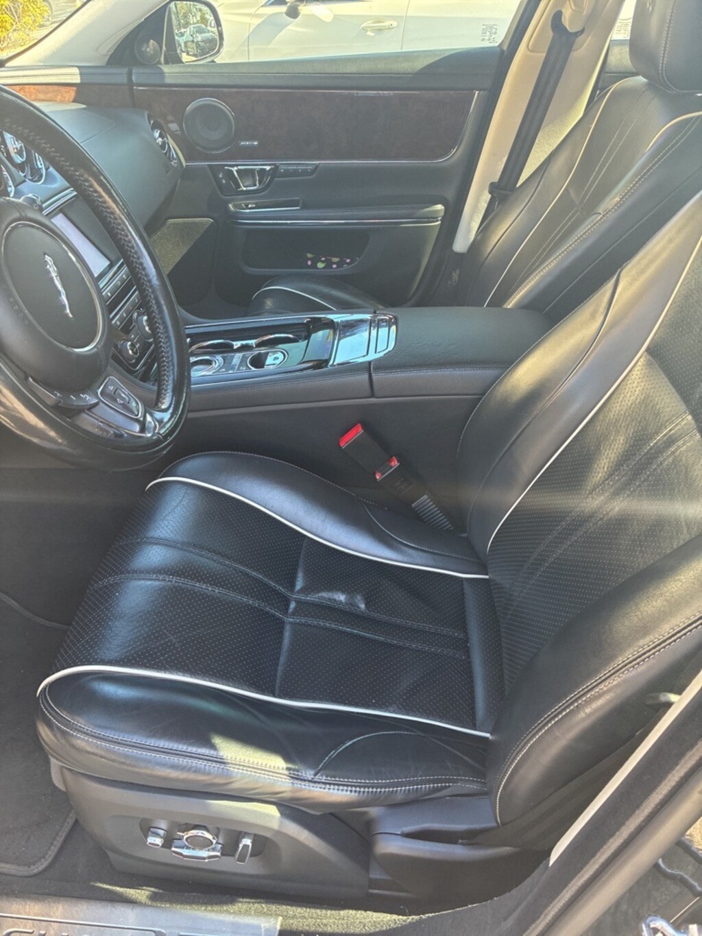 Features: 19" Aleutian 10-Spoke Alloy Wheels, 20 Speakers, 4-Wheel Disc Brakes, ABS brakes, Adaptive suspension, Air Conditioning, Alloy wheels, AM/FM radio: SiriusXM, Anti-whiplash front head restraints, Auto High-beam Headlights, Auto tilt-away steering wheel, Auto-dimming door mirrors, Auto-dimming Rear-View mirror, Auto-leveling suspension, Automatic temperature control, Brake assist, Bumpers: body-color, CD player, Compass, Delay-off headlights, Door auto-latch, Driver door bin, Driver vanity mirror, Dual front impact airbags, Dual front side impact airbags, DVD-Audio, Electronic Stability Control, Emergency communication system: InControl Protect, Exterior Parking Camera Rear, Four wheel independent suspension, Front anti-roll bar, Front Bucket Seats, Front Center Armrest, Front dual zone A/C, Front reading lights, Fully automatic headlights, Garage door transmitter, Genuine wood door panel insert, Headlight cleaning, Heated & Cooled Front Bucket Seats, Heated door mirrors, Heated front seats, Heated rear seats, Heated steering wheel, Illuminated entry, Leather steering wheel, Low tire pressure warning, Memory seat, Navigation system: InControl Navigation, Occupant sensing airbag, Outside temperature display, Overhead airbag, Overhead console, Panic alarm, Passenger door bin, Passenger vanity mirror, Power door mirrors, Power driver seat, Power moonroof, Power passenger seat, Power steering, Power windows, Radio data system, Radio: Meridian 825W Premium Surround Sound System, Rain sensing wipers, Rear anti-roll bar, Rear fog lights, Rear reading lights, Rear seat center armrest, Rear window defroster, Remote keyless entry, Security system, Soft-Grain perforated Leather Seat Trim, Speed control, Speed-sensing steering, Spoiler, Steering wheel memory, Steering wheel mounted audio controls, Tachometer, Telescoping steering wheel, Tilt steering wheel, Traction control, Trip computer, Turn signal indicator mirrors, Variably intermittent wipers, Ventilated front seats, and Ventilated rear seats.