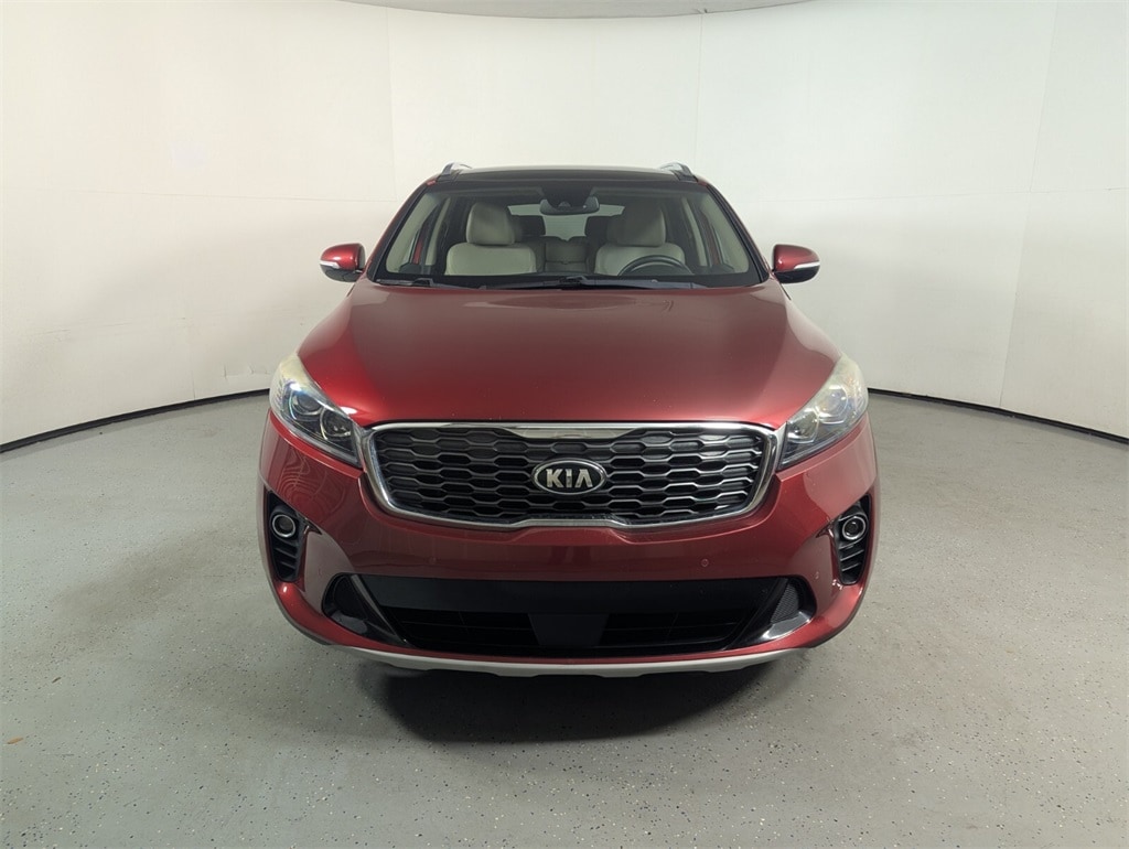 2019 Kia Sorento EX Beautifully finished in Passion Red with Beige Leather interior. V6 4D Sport Utility FWD 8-Speed Automatic 110V Inverter, 18" x 7.5" Alloy Wheels, 2nd Row Shade Curtains, 3.32 Axle Ratio, 3rd row seats: split-bench, 4-Wheel Disc Brakes, 6 Speakers, ABS brakes, Air Conditioning, Alloy wheels, AM/FM radio: SiriusXM, Apple CarPlay & Android Auto, Auto-dimming Rear-View mirror, Automatic temperature control, Brake assist, Bumpers: body-color, Cargo Net (Envelope), Chrome Roof Rails, Delay-off headlights, Driver door bin, Driver vanity mirror, Dual front impact airbags, Dual front side impact airbags, Electronic Stability Control, Emergency communication system: UVO3, EX Touring Package, Exterior Parking Camera Rear, Four wheel independent suspension, Front anti-roll bar, Front Bucket Seats, Front Center Armrest, Front dual zone A/C, Front fog lights, Front reading lights, Fully automatic headlights, Garage door transmitter: HomeLink, harman/kardon Surround Sound Audio System, Heated door mirrors, Heated Front Bucket Seats, Heated front seats, Heated Steering Wheel, Illuminated entry, Leather Seat Trim, Leather steering wheel, LED Interior Lighting, Low tire pressure warning, Occupant sensing airbag, Outside temperature display, Overhead airbag, Overhead console, Panic alarm, Panoramic Sunroof, Park Distance Warning-Forward, Passenger door bin, Passenger vanity mirror, Power door mirrors, Power driver seat, Power Liftgate, Power passenger seat, Power steering, Power windows, Radio data system, Radio: UVO eServices, Radio: UVO eServices w/Premium Navigation, Rear air conditioning, Rear anti-roll bar, Rear seat center armrest, Rear window defroster, Rear window wiper, Remote keyless entry, Roof rack: rails only, Security system, Speed control, Speed-sensing steering, Split folding rear seat, Spoiler, Steering wheel mounted audio controls, Tachometer, Telescoping steering wheel, Tilt steering wheel, Traction control, Trip computer, Turn signal indicator mirrors, Variably intermittent wipers. Clean CARFAX. 19/26 City/Highway MPG