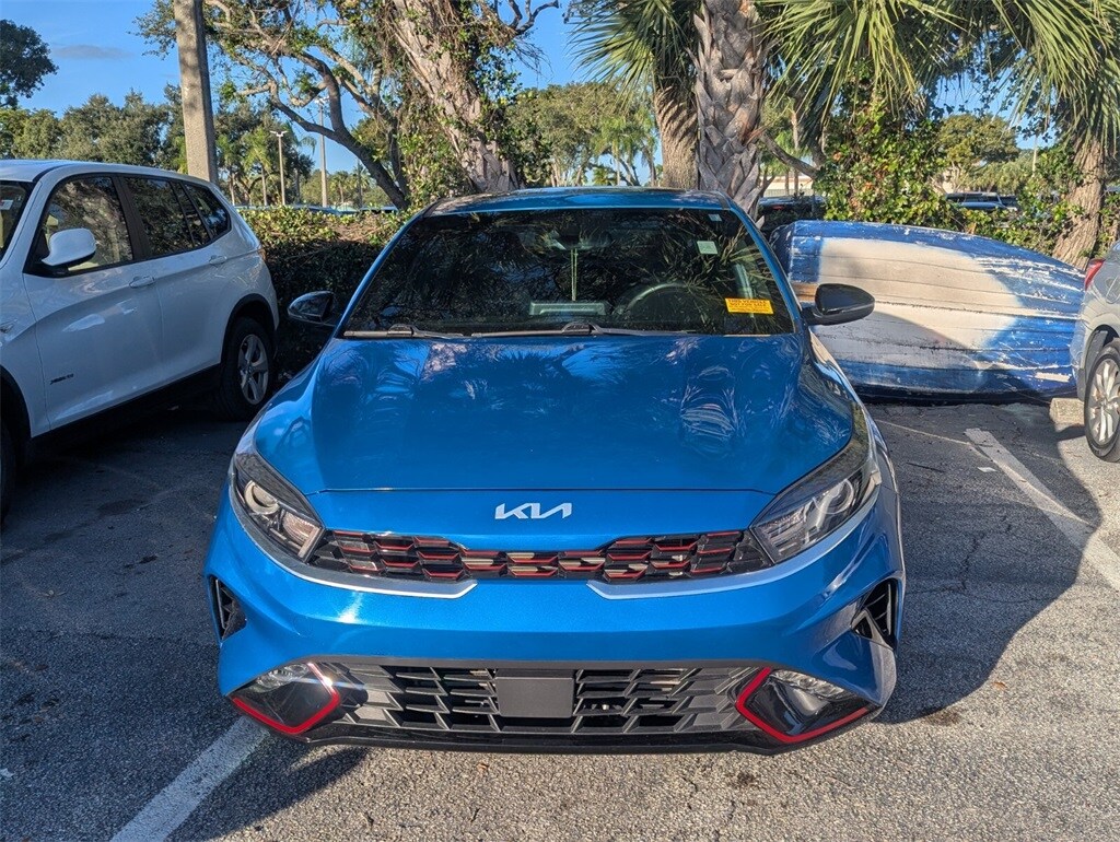 2023 Kia Forte GT-Line Beautifully finished in Sporty Blue with Black Cloth interior. 2.0L I4 MPI 4D Sedan FWD CVT 10-Way Power Driver's Seat, 17" x 7.0J Alloy Wheels, 4-Wheel Disc Brakes, 6 Speakers, ABS brakes, Air Conditioning, Alloy wheels, AM/FM radio: SiriusXM, Apple CarPlay & Android Auto, Auto High-beam Headlights, Automatic temperature control, Brake assist, Bumpers: body-color, Carpet Floor Mats, Cloth & SynTex Seat Trim, Delay-off headlights, Driver door bin, Driver vanity mirror, Dual front impact airbags, Dual front side impact airbags, Electronic Parking Brake (EPB), Electronic Stability Control, Emergency communication system, Exterior Parking Camera Rear, Forward Collision Avoidance-Assist - Cyclist, Front anti-roll bar, Front Bucket Seats, Front Center Armrest, Front dual zone A/C, Front fog lights, Front reading lights, Front wheel independent suspension, Fully automatic headlights, GT-Line Premium Package, GT-Line Sport Premium Package, Heated & Ventilated Front Seats, Heated door mirrors, Illuminated entry, Leather Shift Knob, Leather steering wheel, LED Interior Lighting, Low tire pressure warning, Navigation System, Navigation-Based Smart Cruise Control (NSCC), Occupant sensing airbag, Outside temperature display, Overhead airbag, Overhead console, Panic alarm, Passenger door bin, Passenger vanity mirror, Power door mirrors, Power steering, Power Sunroof, Power windows, Radio data system, Radio: 10.25" Display Audio, Radio: harman kardon Premium Audio, Rear AC Vent, Rear seat center armrest, Rear USB Charger, Rear window defroster, Remote keyless entry, Security system, Smart Cruise Control w/Stop & Go, Speed control, Split folding rear seat, Spoiler, Sport steering wheel, Steering wheel mounted audio controls, SynTex Seat Trim, Tachometer, Telescoping steering wheel, Tilt steering wheel, Traction control, Trip computer, Turn signal indicator mirrors, Variably intermittent wipers, Wireless Charging. 28/39 City/Highway MPG