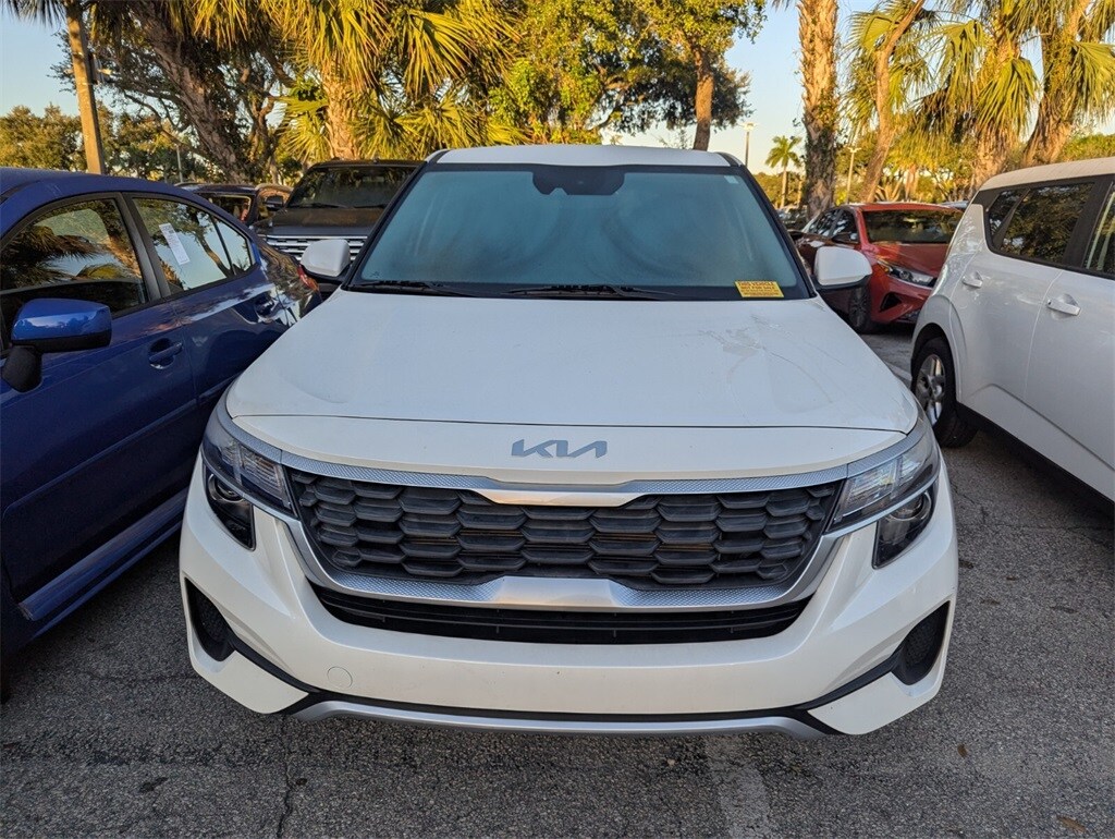 2023 Kia Seltos LX Beautifully finished in Snow White Pearl with Black Cloth interior. 2.0L I4 MPI 4D Sport Utility AWD CVT 4-Wheel Disc Brakes, 6 Speakers, 6.052 Axle Ratio, ABS brakes, Air Conditioning, Alloy wheels, AM/FM radio, Apple CarPlay & Android Auto, Auto High-beam Headlights, Brake assist, Bumpers: body-color, Carpet Floor Mats, Cloth Seat Trim, Delay-off headlights, Driver door bin, Driver vanity mirror, Dual front impact airbags, Dual front side impact airbags, Electronic Stability Control, Exterior Parking Camera Rear, Four wheel independent suspension, Front anti-roll bar, Front Bucket Seats, Front Center Armrest, Front reading lights, Fully automatic headlights, Illuminated entry, Low tire pressure warning, Occupant sensing airbag, Outside temperature display, Overhead airbag, Overhead console, Panic alarm, Passenger door bin, Passenger vanity mirror, Power door mirrors, Power steering, Power windows, Radio: AM/FM/MP3 Display Audio, Rear window defroster, Rear window wiper, Remote keyless entry, Security system, Speed control, Speed-sensing steering, Split folding rear seat, Spoiler, Steering wheel mounted audio controls, Tachometer, Telescoping steering wheel, Tilt steering wheel, Traction control, Trip computer, Variably intermittent wipers, Wheels: 17" Alloy w/Dark Gray Finish. Clean CARFAX. 27/31 City/Highway MPG