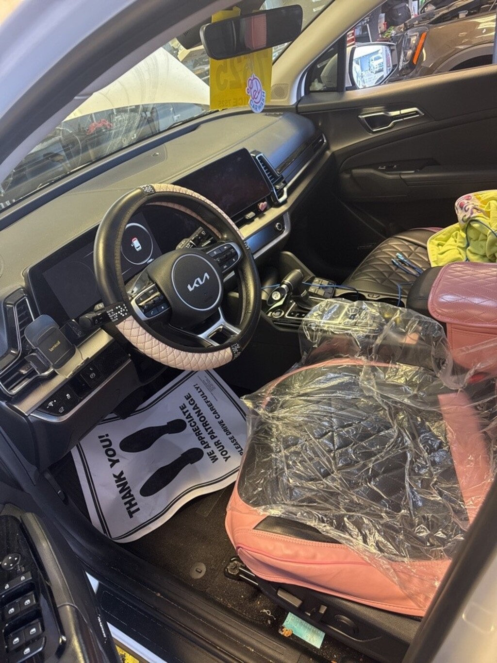 2024 Kia Sportage SX Beautifully finished in Glacial White Pearl with Black Artificial Leather interior. I4 4D Sport Utility FWD 8-Speed Automatic 4-Wheel Disc Brakes, 8 Speakers, ABS brakes, Air Conditioning, Alloy wheels, AM/FM radio: SiriusXM, Apple CarPlay & Android Auto, Auto High-beam Headlights, Automatic temperature control, Axle Ratio: 3.648, Brake assist, Bumpers: body-color, Carpeted Floor Mats, Compass, Delay-off headlights, Driver door bin, Driver vanity mirror, Dual front impact airbags, Dual front side impact airbags, EC Mirror w/HomeLink, Electronic Stability Control, Emergency communication system, Four wheel independent suspension, Front anti-roll bar, Front Bucket Seats, Front Center Armrest, Front dual zone A/C, Front reading lights, Fully automatic headlights, harman/kardon® Speakers, Heated door mirrors, Heated Front Bucket Seats, Heated front seats, Heated steering wheel, Illuminated entry, Leather Shift Knob, Leather steering wheel, Leatherette Seat Trim, Low tire pressure warning, Memory seat, Navigation System, Occupant sensing airbag, Outside temperature display, Overhead airbag, Overhead console, Panic alarm, Passenger door bin, Passenger vanity mirror, Power door mirrors, Power driver seat, Power Liftgate, Power moonroof, Power steering, Power windows, Radio: AM/FM/HD Audio System, Rain sensing wipers, Rear anti-roll bar, Rear reading lights, Rear seat center armrest, Rear side impact airbag, Rear window defroster, Rear window wiper, Remote keyless entry, Security system, Speed control, Speed-sensing steering, Split folding rear seat, Spoiler, Steering wheel mounted audio controls, Tachometer, Telescoping steering wheel, Tilt steering wheel, Traction control, Trip computer, Turn signal indicator mirrors, Variably intermittent wipers, Wheels: 18" Matte Gray Alloy. Clean CARFAX. 25/33 City/Highway MPG