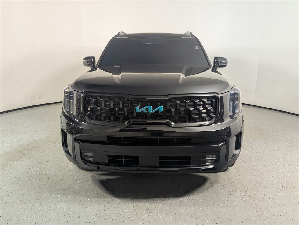 This Telluride is well equipped with Terracotta Interior Color Package, 10 Speakers, 3.648 Axle Ratio, 3rd row seats: split-bench, 4-Wheel Disc Brakes, ABS brakes, Air Conditioning, Alloy wheels, AM/FM radio: SiriusXM, Apple CarPlay & Android Auto, Auto High-beam Headlights, Auto-dimming Rear-View mirror, Auto-leveling suspension, Automatic temperature control, Brake assist, Bumpers: body-color, Carpet Floor Mats, Compass, Delay-off headlights, Driver door bin, Driver vanity mirror, Dual front impact airbags, Dual front side impact airbags, Electronic Stability Control, Emergency communication system: 911 Connect, Exterior Parking Camera Rear, Four wheel independent suspension, Front anti-roll bar, Front Bucket Seats, Front Center Armrest, Front dual zone A/C, Front fog lights, Front reading lights, Fully automatic headlights, Garage door transmitter: HomeLink, harman/kardon® Speakers, Heated & Ventilated Front Bucket Seats, Heated door mirrors, Heated front seats, Heated steering wheel, Illuminated entry, Knee airbag, Leather Seat Trim, Leather Shift Knob, Leather steering wheel, Low tire pressure warning, Memory seat, Navigation System/ GPS, Occupant sensing airbag, Outside temperature display, Overhead airbag, Overhead console, Panic alarm, Passenger door bin, Passenger vanity mirror, Power door mirrors, Power driver seat, Power Liftgate, Power moonroof, Power passenger seat, Power steering, Power windows, Radio data system, Radio: AM/FM Harman Kardon Audio System, Rear air conditioning, Rear anti-roll bar, Rear audio controls, Rear reading lights, Rear side impact airbag, Rear window defroster, Rear window wiper, Reclining 3rd row seat, Remote keyless entry, Roof rack: rails only, Security system, Smart Key w/ Push Button and Remote Start, Speed control, Speed-sensing steering, Split folding rear seat, Spoiler, Steering wheel mounted audio controls, Tachometer, Telescoping steering wheel, Tilt steering wheel, Traction control, Trip computer, Turn signal indicator mirrors, Variably intermittent wipers, Ventilated front seats, and Wheels: 20" x 7.5" Black Finish X-LINE Exclusive.