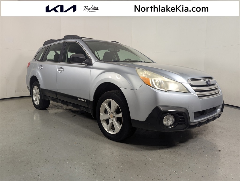 2014 Subaru Outback 2.5i Beautifully finished in Ice Silver Metallic with Black Cloth interior. 2.5L 4-Cylinder DOHC 16V 4D Sport Utility AWD CVT Lineartronic 16" x 6.5" Steel Wheels w/Full Wheel Covers, 17" Alloy Wheels, 3.90 Axle Ratio, 4 Speakers, 4-Wheel Disc Brakes, ABS brakes, Air Conditioning, Alloy Wheel Lock Kit, Alloy Wheel Package, AM/FM radio, AM/FM Stereo w/Single-Disc CD Player, Anti-whiplash front head restraints, Brake assist, Bumpers: body-color, CD player, Cloth Upholstery, Driver door bin, Driver vanity mirror, Dual front impact airbags, Dual front side impact airbags, Electronic Stability Control, Fog Lamps, Four wheel independent suspension, Front anti-roll bar, Front Bucket Seats, Front Center Armrest w/Storage, Front reading lights, Fully automatic headlights, Illuminated entry, Leather Shift Knob, Low tire pressure warning, Occupant sensing airbag, Outside temperature display, Overhead airbag, Overhead console, Panic alarm, Passenger door bin, Passenger vanity mirror, Popular Package #1B, Power door mirrors, Power steering, Power windows, Radio data system, Rear anti-roll bar, Rear seat center armrest, Rear window defroster, Rear window wiper, Remote keyless entry, Roof rack, Security system, Speed control, Speed-sensing steering, Split folding rear seat, Spoiler, Steering wheel mounted audio controls, Steering-Wheel Paddle-Shift Control Switches, Tachometer, Telescoping steering wheel, Tilt steering wheel, Traction control, Trip computer, Variably intermittent wipers. Clean CARFAX. Priced below KBB Fair Purchase Price! 24/30 City/Highway MPG