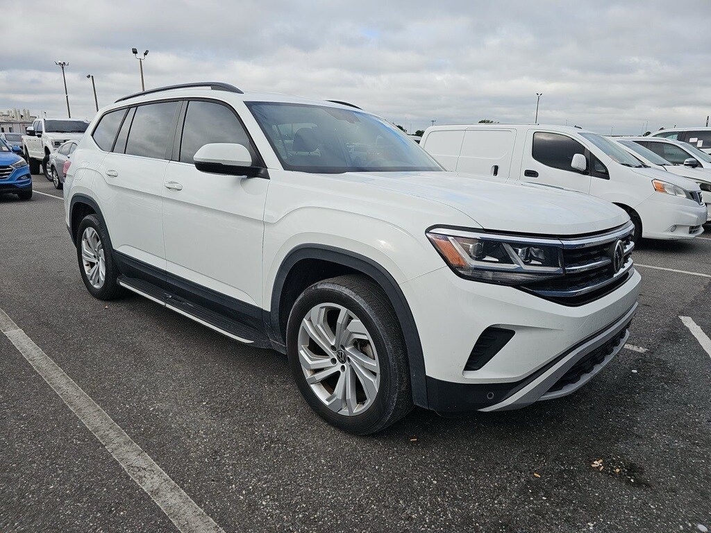 2021 Volkswagen Atlas 3.6L V6 SE w/Technology Beautifully finished in Pure White with Titan Black Premium Synthetic interior. 3.6L VR6 4D Sport Utility FWD 8-Speed Automatic with Tiptronic 3.60 Axle Ratio, 3rd row seats: split-bench, 4-Wheel Disc Brakes, 6 Speakers, ABS brakes, Air Conditioning, Alloy wheels, Auto-dimming Rear-View mirror, Automatic temperature control, Brake assist, Bumpers: body-color, Compass, Delay-off headlights, Driver door bin, Driver vanity mirror, Dual front impact airbags, Dual front side impact airbags, Electronic Stability Control, Emergency communication system: VW Car-Net services (capabilities require enrollment or subscription), Exterior Parking Camera Rear, Forward collision: FCW w/Autonomous Emergency Braking mitigation, Four wheel independent suspension, Frameless Self-Dimming Rearview Mirror, Front anti-roll bar, Front Bucket Seats, Front Center Armrest, Front dual zone A/C, Front fog lights, Front reading lights, Fully automatic headlights, Heated Comfort Front Bucket Seats, Heated door mirrors, Heated front seats, Heavy Duty Trunk Liner w/VW CarGo Blocks, Illuminated entry, Leather Shift Knob, Low tire pressure warning, Occupant sensing airbag, Outside temperature display, Overhead airbag, Overhead console, Panic alarm, Passenger door bin, Passenger vanity mirror, Perforated V-Tex Leatherette Seating Surfaces, Power door mirrors, Power driver seat, Power Liftgate, Power steering, Power windows, Privacy Cover, Radio data system, Rain sensing wipers, Rear air conditioning, Rear anti-roll bar, Rear reading lights, Rear seat center armrest, Rear window defroster, Rear window wiper, Remote keyless entry, Roof rack: rails only, Rubber Mats Kit - Bench Seat, Security system, Speed control, Speed-sensing steering, Split folding rear seat, Spoiler, Standard Suspension, Steering wheel mounted audio controls, Tachometer, Telescoping steering wheel, Tilt steering wheel, Towing Package, Traction control, Trip computer, Turn signal indicator mirrors, Variably intermittent wipers, Wheels: 20" 5-Spoke Silver Alloy. Clean CARFAX.